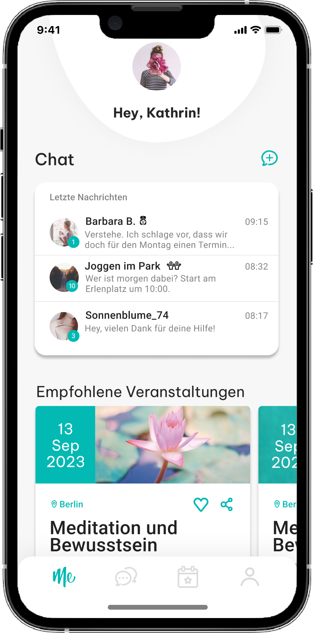 Diskutiere im Gruppenchat mit anderen Betroffenen ein Thema, das Dich interessiert