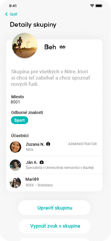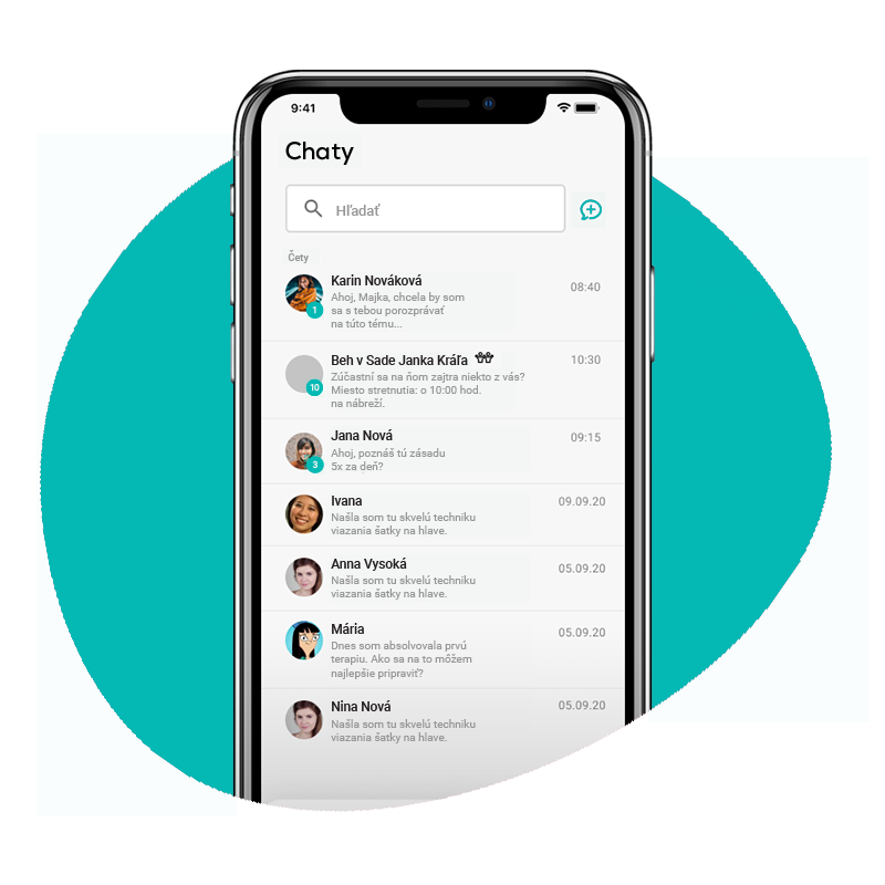 → skupinové chaty typu „jedna s jednou“ s ostatnými používateľmi aplikácie na témy ako je výživa, wellness, cvičenie, rodina atď.