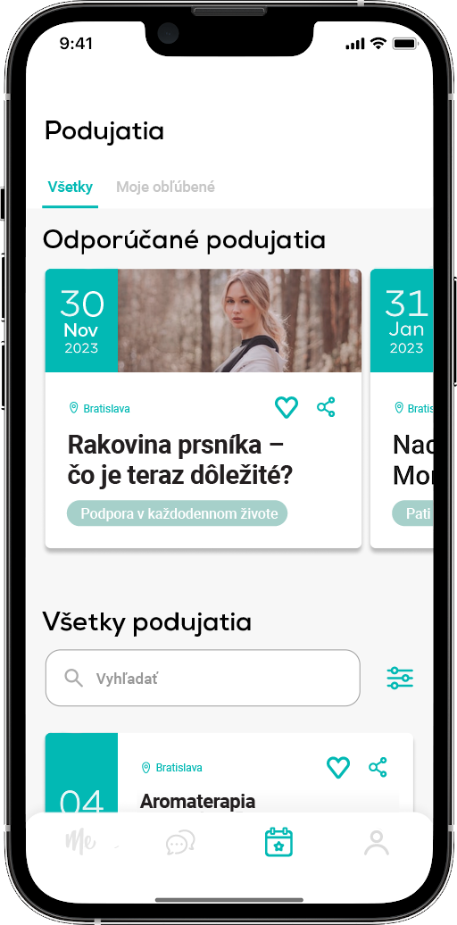 Pacientske organizácie majú možnosť zobrazovať svoje vzdelávacie podujatia pre pacientky v kalendári podujatí aplikácie Focus Me ako spôsob pozvania a informovania pacientok.